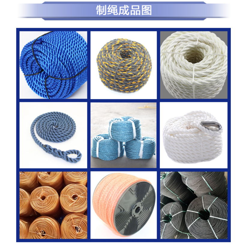是我厂为节约能源提高制绳效率,增加制绳厂家经济效益而开发的一种成绳机。是一种集制股与成绳为一体,在一次连续操作下制成φ3-φ30mm的成品绳,从而大大提高生产效率。减少了制股到制绳的工作程序,无废丝、废料产生,而且所制绳索更加美观耐用。该机与其他绳机比较节约材料30%、能源20%,劳动生产效率提高35%,节约制绳成本20%,每吨绳可为制绳厂家节约50%劳动力,同时具有结构紧凑,性能稳定,无噪音,无污染,制动快,安全可靠等优点,是一种具有明显经济及社会效益产品,为节约能源提供了新途径。该设备内置的自动排绳器,可使盘绳有序的自动排绳成盘,计米器可按生产要求随意增减制绳长度,重量在到达用户指定数值可自动停机。